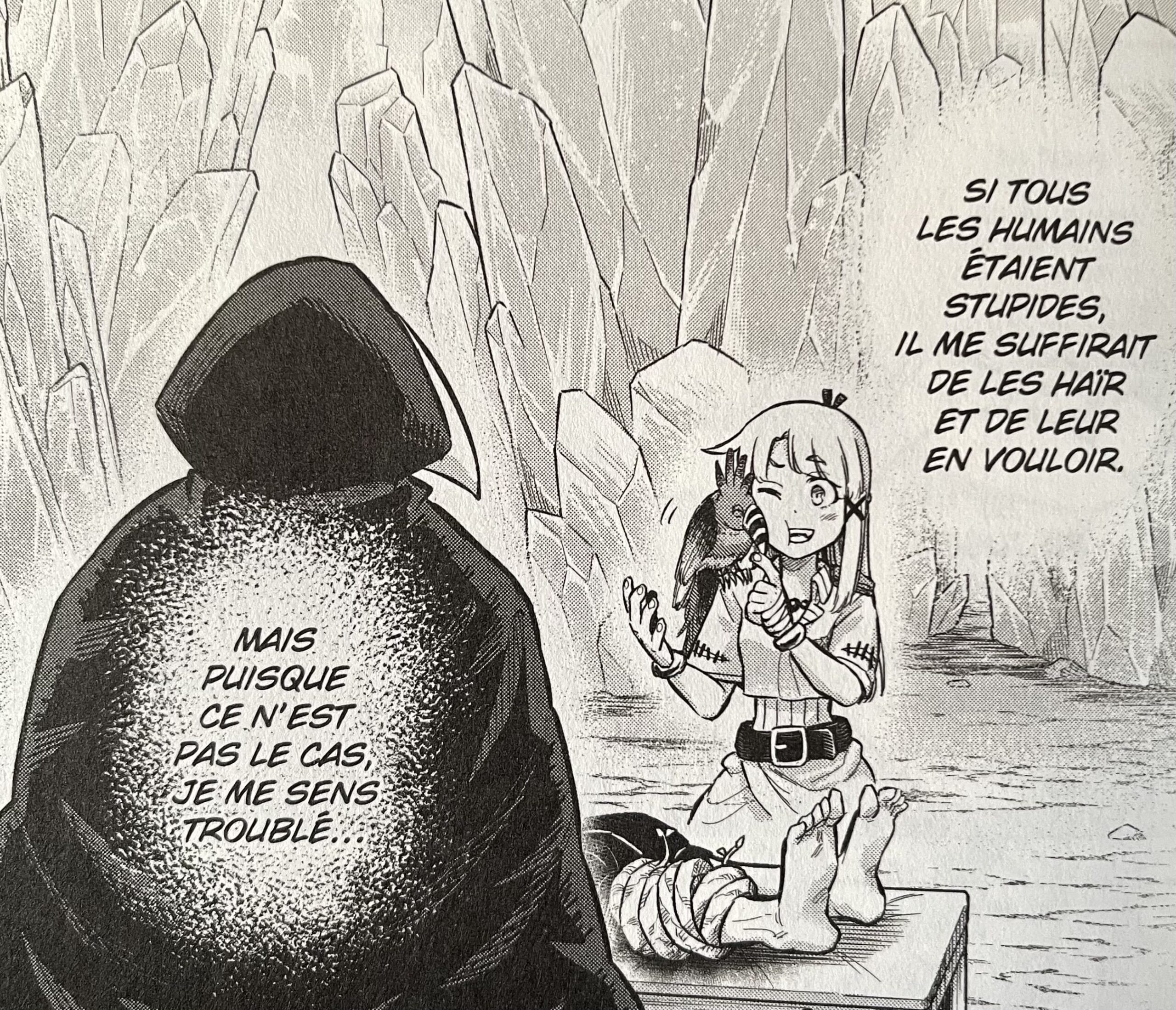 Tina n’est pas en reste non plus. La jeune fille commence à s’affirmer et on sent que Galon la perçoit de plus en plus comme son égale. En témoigne le rôle qu’il lui donne dans le soin futur des humains. Cette évolution est plaisante à voir et promet à la jeune fille d’occuper un rôle de plus en plus important dans l’intrigue. Galon lui aussi continue d’évoluer au contact de Tina et sa perception des humains change progressivement, particulièrement à force de découvrir au gré de son voyage qu’une entente mutuelle entre eux et les monstres est possible.