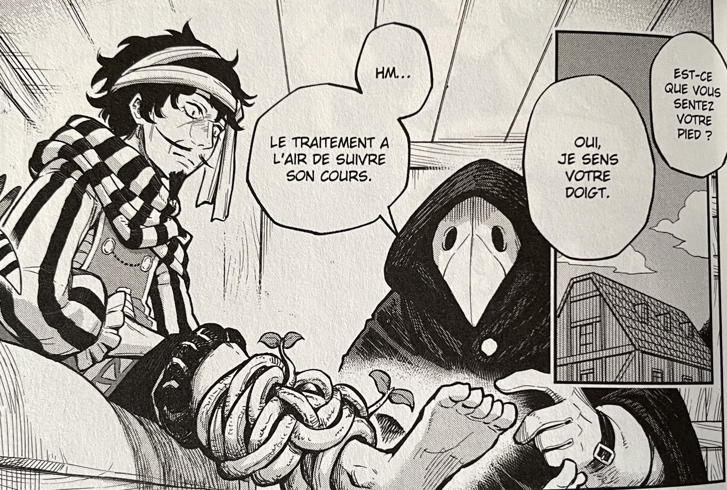 Ce sixième tome nous permet de souffler après les incroyables révélations sur le passé de Galon et ses motivations à devenir médecin. On repart ainsi en sa compagnie dans ce doux voyage, limite contemplatif, à la rencontre de malades et de créatures toujours plus originales les unes que les autres. Il n’est cependant pas sans but. Si dans un premier temps il alertera le lecteur sur les méfaits de l’alcool, il permet aussi d’introduire le prochain arc consacré à la recherche du remède contre la mystérieuse maladie incurable qui sert de fil rouge à l’histoire.