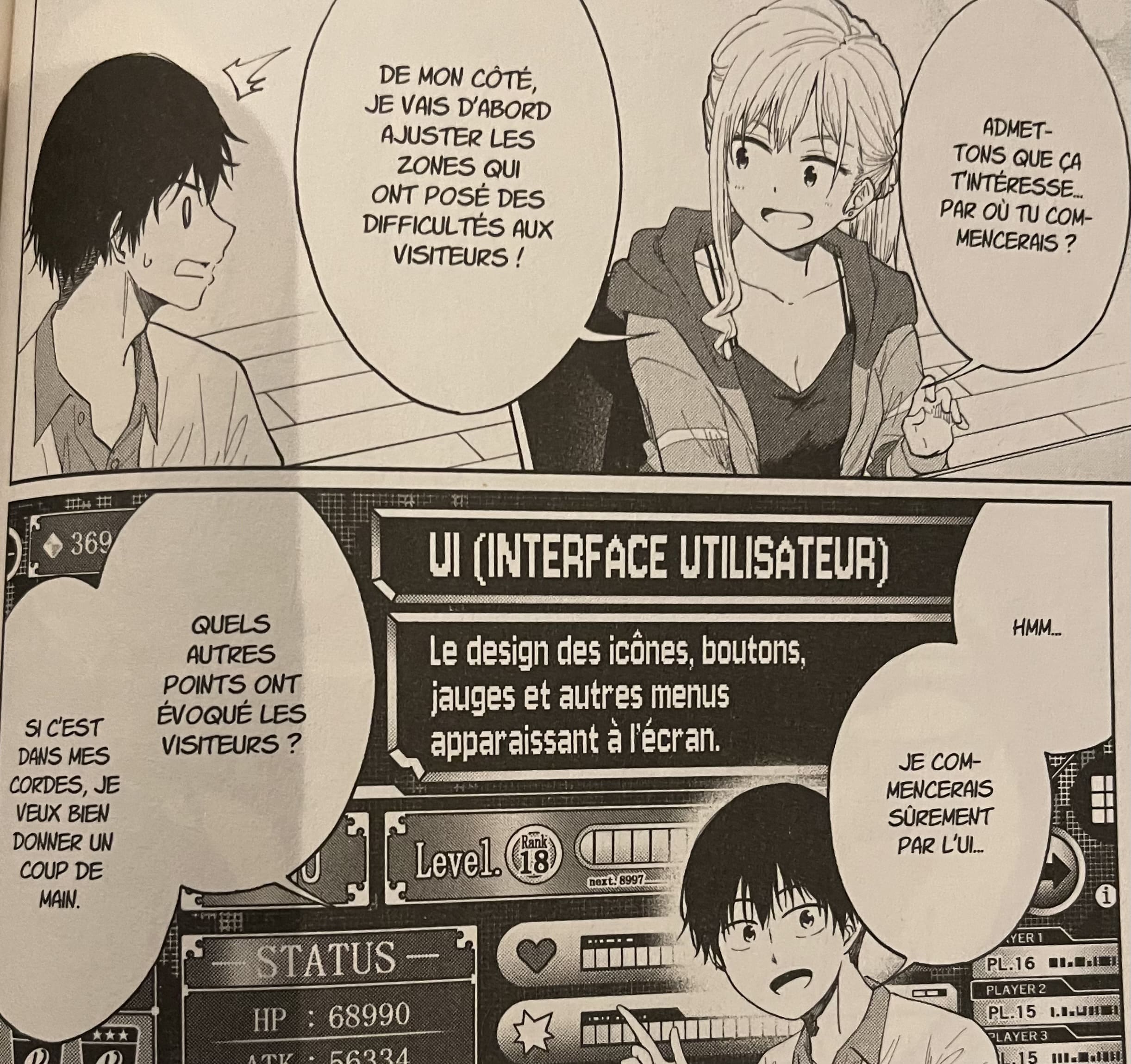 En effet, que l’on soit joueur, développeur ou simplement curieux, on prend un immense plaisir à découvrir cet univers au fur et à mesure que se construit le projet d’Itto et Haruka. Particulièrement grâce à l’incroyable travail de documentation de l’auteur. Le vocabulaire est précis, les définitions nombreuses mais ne laissent jamais le lecteur sur le carreau. Tout est fait pour nous plonger en immersion et avec justesse dans un monde dont on entend souvent parler mais qui restait jusqu’alors bien mystérieux pour de nombreux lecteurs. Autant vous le dire, à la fin de ce premier tome, vous en aurez déjà percé bien des secrets. Que ce soit l’organisation, les contraintes et même le ressenti des développeurs de jeux vidéo.