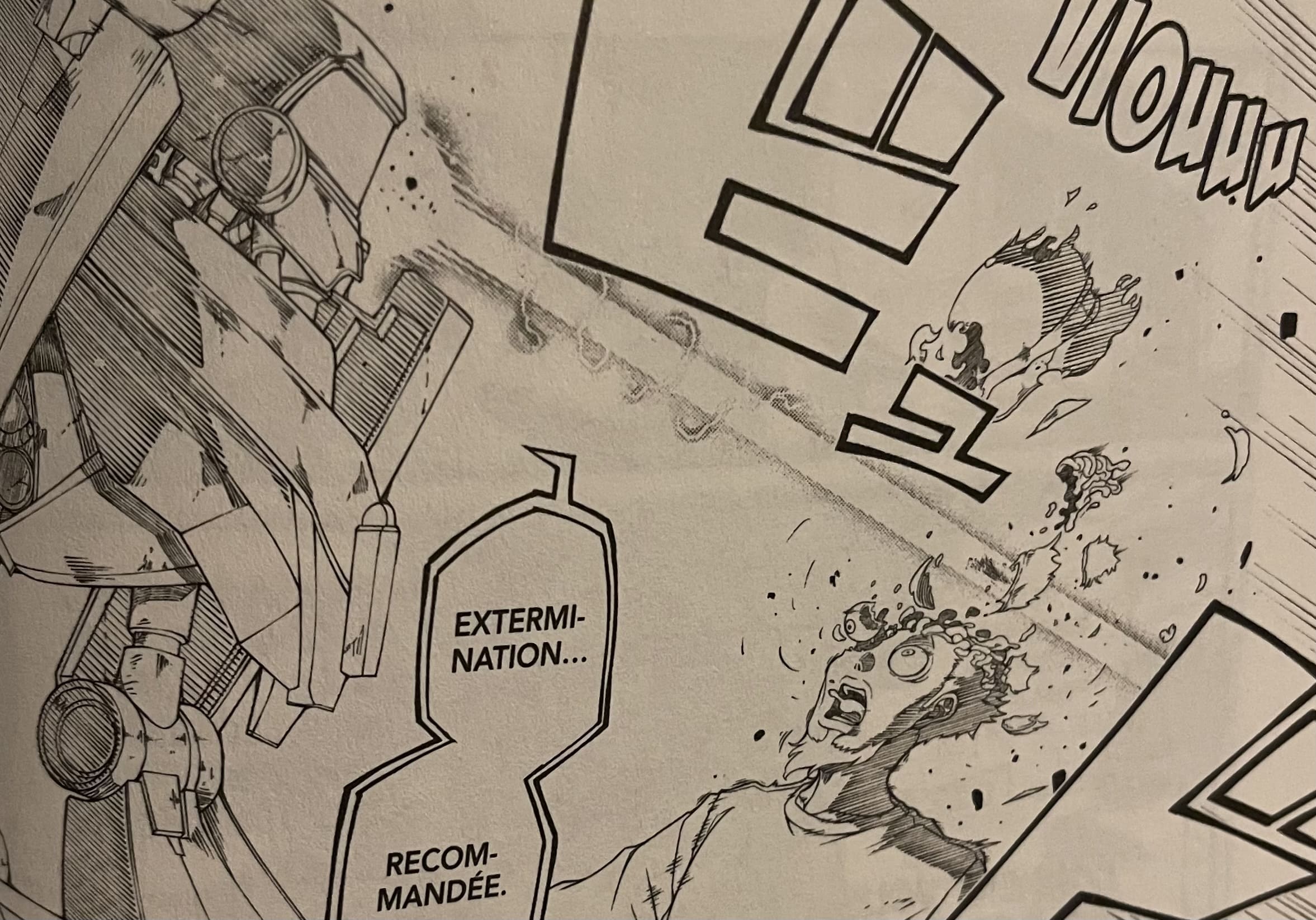 Bien entendu, en plus des mots, l’horreur de la guerre est aussi visuelle. Le mangaka a en effet un très beau trait de crayon à la fois dynamique et précis. Certaines planches sont criantes de détails, sanglantes, et soulignent à merveille l’absence d’humanité de l’ennemi. Je pense notamment à l’attaque des vers dévoreurs de chair. On est alors bien content qu’il subsiste un brin d’humour dans ce manga. Il permet d’égayer toute la noirceur de son univers, même si le côté « panty » risque de déplaire, voire gêner certains lecteurs.