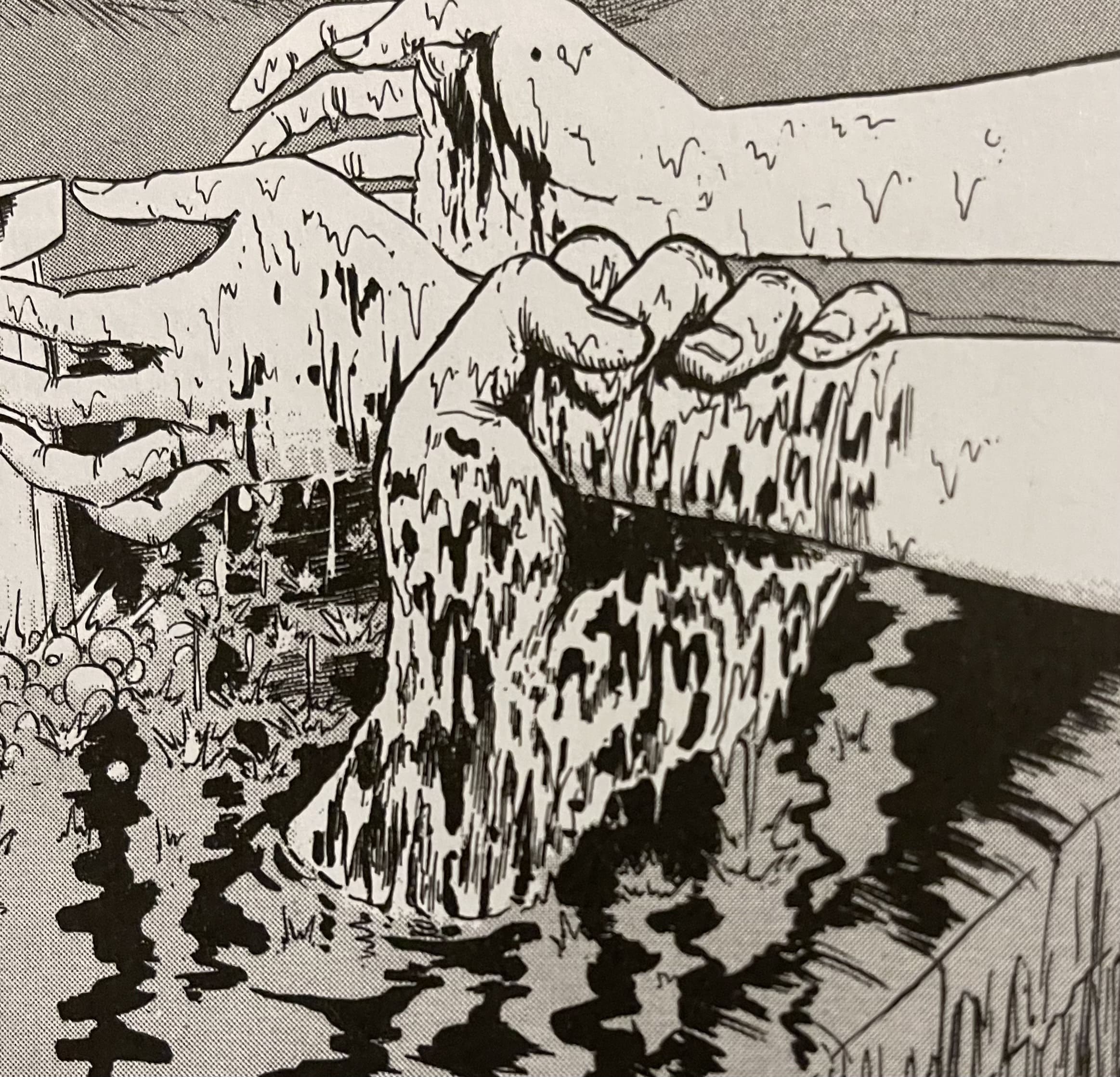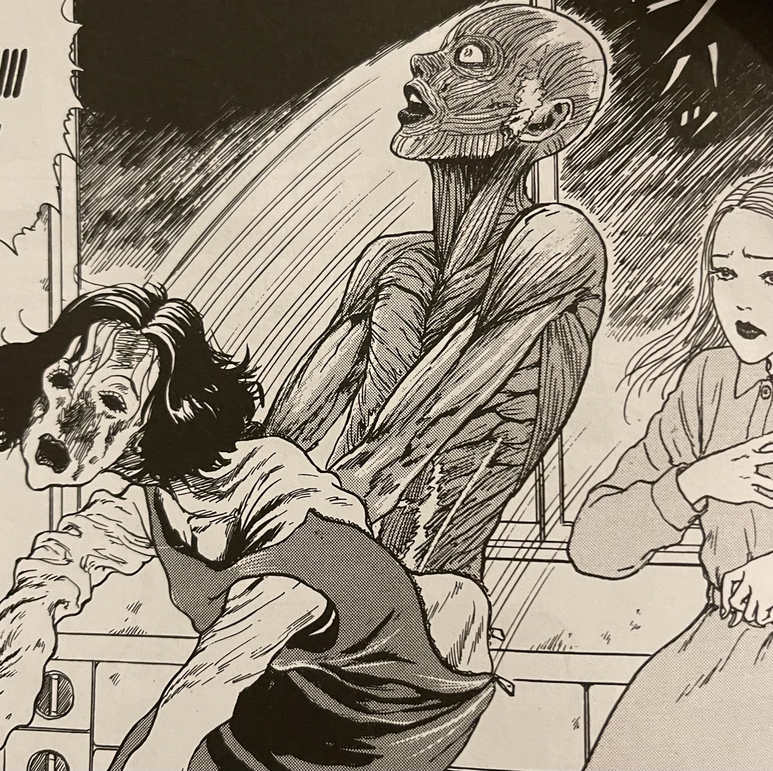 C’est ainsi que naît l’horreur en nous, tout d’abord visuellement grâce à la fine représentation des visages et aux nombreux dessins corporels : déformation, démembrement, cadavre dont l’auteur a le secret. Ces derniers sont précis, détaillés et profitent de nombreux jeux d’ombre pour renforcer le malaise. Puis parfois l’horreur prend une tournure absurde, comme dans Les Ballons flottants où des têtes humaines attaquent les habitants de Tokyo. Cet événement irrationnel devient alors le vecteur de l’horreur. Quoiqu’il en soit le malaise s’installe toujours en nous.