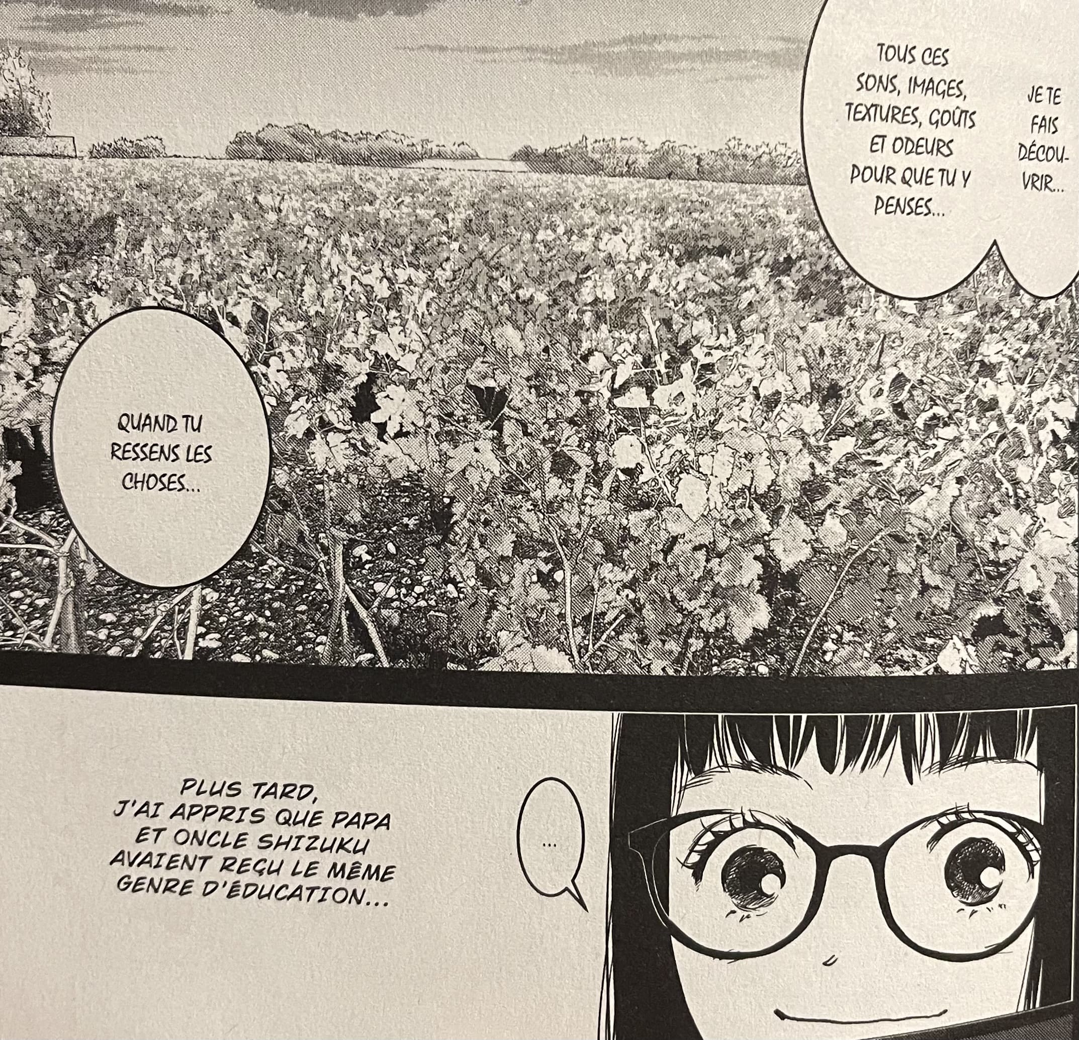 Un univers que l’auteur n’hésite pas à sublimer au travers des mots des différents protagonistes qui décrivent les vins qu’ils goûtent. On a l’impression de lire un poème qui petit à petit prend vie sous nos yeux, grâce aux magnifiques planches remplies de détails qui illustrent le manga. Cette alliance est saisissante, nous donne des frissons et l’envie de déguster nous aussi les vins présentés.