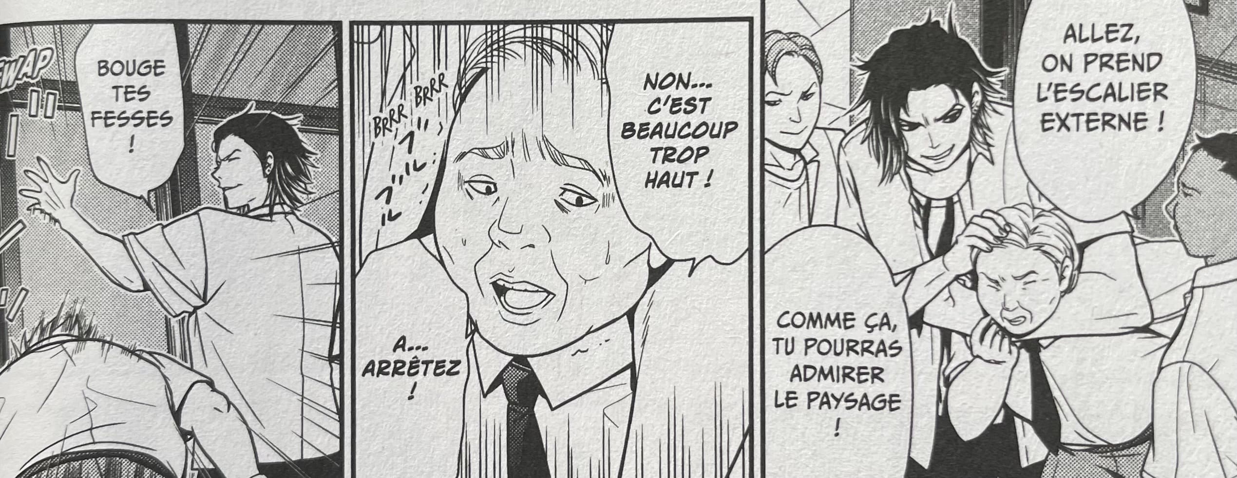 On peut facilement faire un parallèle avec Alice in Borderland. Le titre présente en effet des similitudes dans sa construction : des épreuves avec des règles, un mystérieux maître du jeu, un lieu entre la vie et la mort… Le pitch apparaît alors peu original. Cependant, l’exécution, elle, est excellente. L’accent est en effet mis sur la notion de rédemption alors que dans d’autres œuvres elle s’efface rapidement. Cela permet de découvrir l’éventail de réactions (tentative de négociation, rejet, incompréhension, effroi ) de ces personnes coupables de harcèlement. Ceci étant l’un des thèmes prédominants de ce premier tome. L’auteur n’hésitera d’ailleurs pas à souligner l’horreur de ces comportements tout en montrant l’évolution du ressenti des protagonistes face à leur crime.