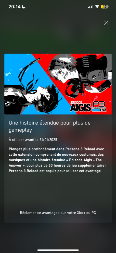L’information ne vous aura peut être pas échappé, mais le pass d’extension de Persona 3 reload est gratuit pour les possesseurs du Xbox gamepass Ultimate. Cette offre sera vraisemblablement disponible jusqu’au 31 janvier 2025.