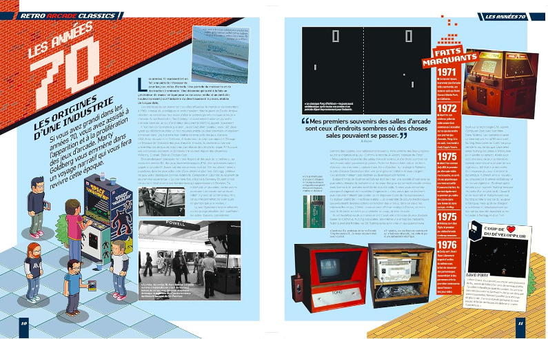 Ainsi, on traverse rapidement la genèse de Space Invaders, Galaxian, Q-bert ou encore Donkey Kong, symboles d’une époque fondatrice. De plus, cette section permet aux plus jeunes d’appréhender une période qu’ils n’ont pas connue. Notamment l’entrée en scène de mastodontes comme Nintendo ou Sega, alors simples challengers. Cependant, chronologiquement étalé sur moins de dix pages, le contenu fascine autant qu’il frustre par ses approximations.