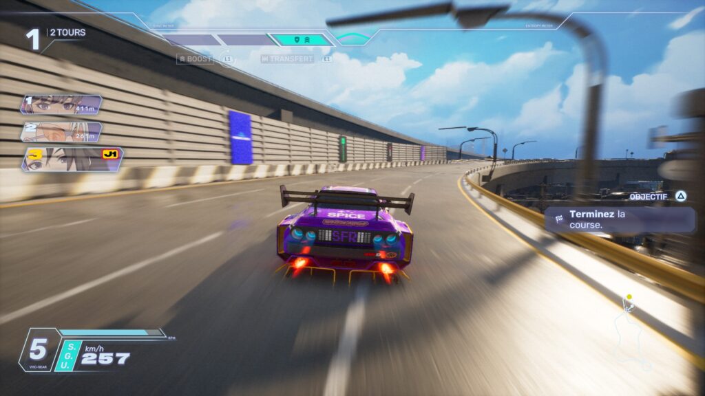 De plus, même en optimisant ses trajectoires, en maîtrisant le drift et en déclenchant les boosts au bon moment, la victoire reste hors de portée. En effet, l’intelligence artificielle semble coller à la piste avec une adhérence irréelle, comme si elle ignorait totalement les contraintes du pilotage. Dès lors, la frustration remplace rapidement le plaisir, ce qui nuit fortement à la rejouabilité.