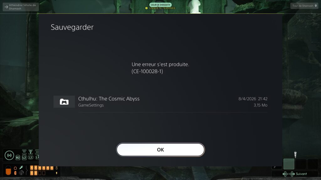 D’après Sony, l’erreur CE‑100028‑1 sur PS5 signifie en général que l’espace de stockage du SSD interne est insuffisant pour ce que la console essaie de faire (installation d’un update, mise à jour d’un jeu, sauvegarde, etc.). J’ai un 1 To de libre, mon cloud est libéré régulièrement. Faute du jeu ou de la patience de ma console, j’ai arrêté là.