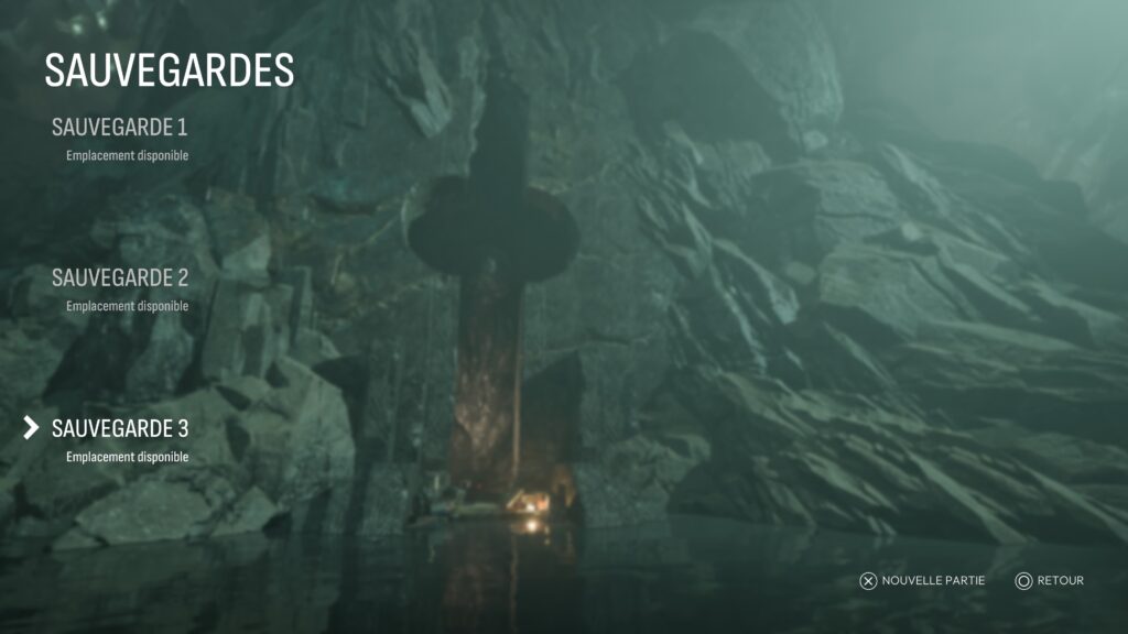 Pire encore, impossible de revenir en arrière : charger une partie me renvoyait soit dans mon saut de l’ange dans le vide, soit dans le temple, mais toujours sans une goutte d’eau. C’est donc une fois encore un retour au chapitre 1 qui s’offrait à moi, puisque la sélection de chapitre m’était maintenant inaccessible.