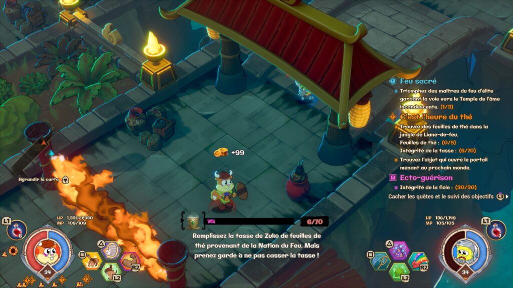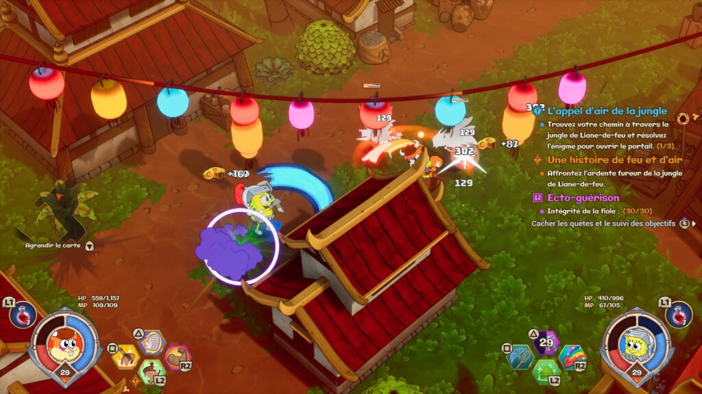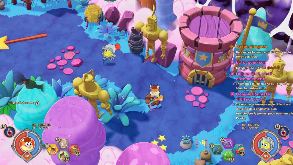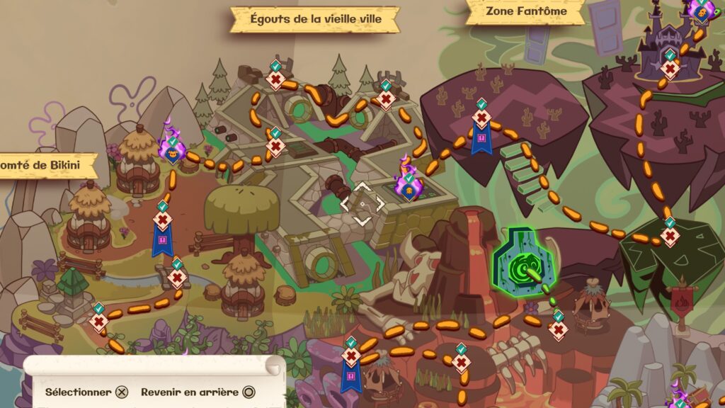 Avec une direction artistique adorablement colorée, un humour fidèle à ses origines et des musiques plutôt aléatoires sans être agaçantes, Nicktoons & the Dice of Destiny s’en tire très bien côté ambiance. Le seul vrai regret : l’absence de doublage français pour nos héros ! Ayant passé pas mal de temps devant ces dessins animés enfant, j’ai trouvé ce manque dommage, même si les voix anglaises sont réussies.
