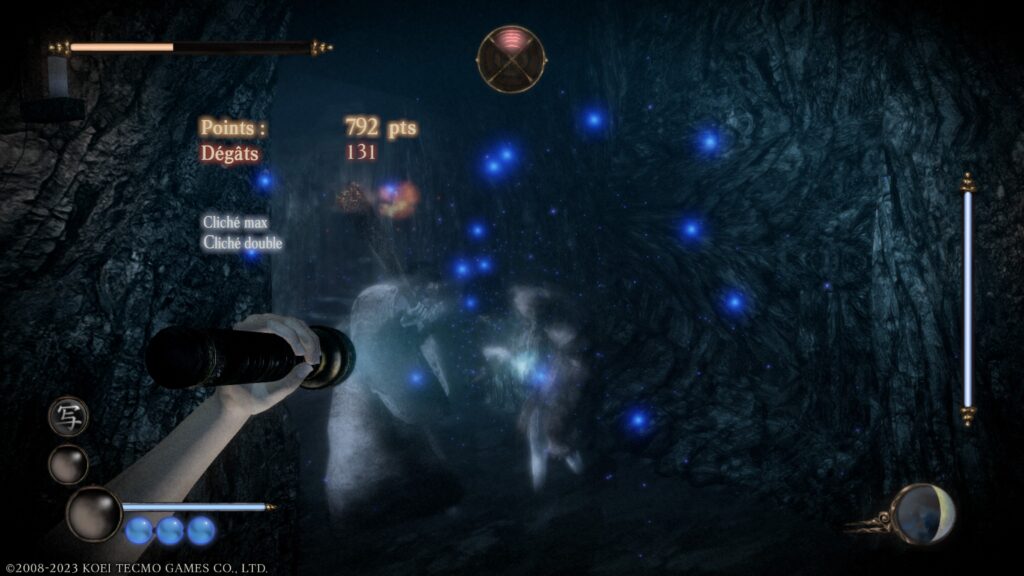 Fidèle à l’ADN de la série, la Caméra Obscura reste l’arme principale contre les esprits. Chaque cliché, pris au bon moment, inflige des dégâts tout en capturant l’essence des fantômes. Une panoplie d’objectifs différents est disponible : ralentir les ennemis, multiplier les attaques, augmenter les chances de coups critiques… sans oublier les pellicules plus puissantes que celle illimitée, à échanger contre des points. Bref, rien de vraiment inédit sous le voile lugubre de la saga.