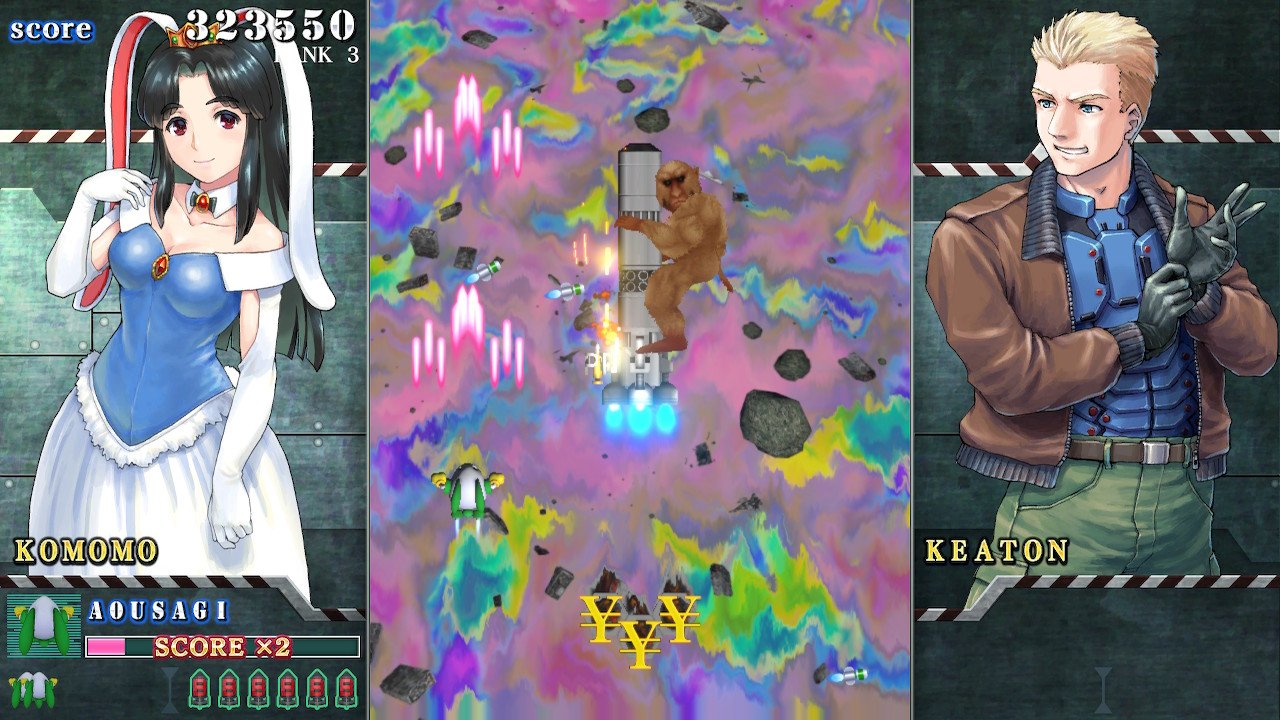 Comme attendu, la densité des tirs ennemis varie selon le niveau de difficulté, remplissant l’écran de projectiles. Pourtant, la variété des ennemis reste limitée et les boss manquent cruellement de charisme. Le dernier affrontement, contre un singe géant façon « Goku transformé en singe », frôle même le ridicule, tant par son design que par la mollesse de ses attaques.