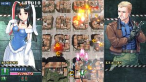 Comme tout bon shmup 2D vertical, l’action se veut frénétique : tanks, hélicoptères et vagues d’ennemis surgissent dans une mise en scène  fidèle à l’esprit arcade. Cependant, même si le scénario se veut modulable selon que l’on joue seul ou à deux, il faut bien admettre que cette promesse reste timide. Les cut-scenes, simples et maladroites, rappellent davantage un dialogue de cour de récré qu’une véritable intrigue. Résultat : difficile de s’attacher ou de ressentir un quelconque enjeu narratif.