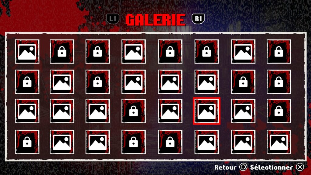 Le mode histoire : sans dialogue, nous permet de mêler notre mission à bien tout en ramassant des VHS ici et là afin de débloquer des images et des musiques dans la galerie.