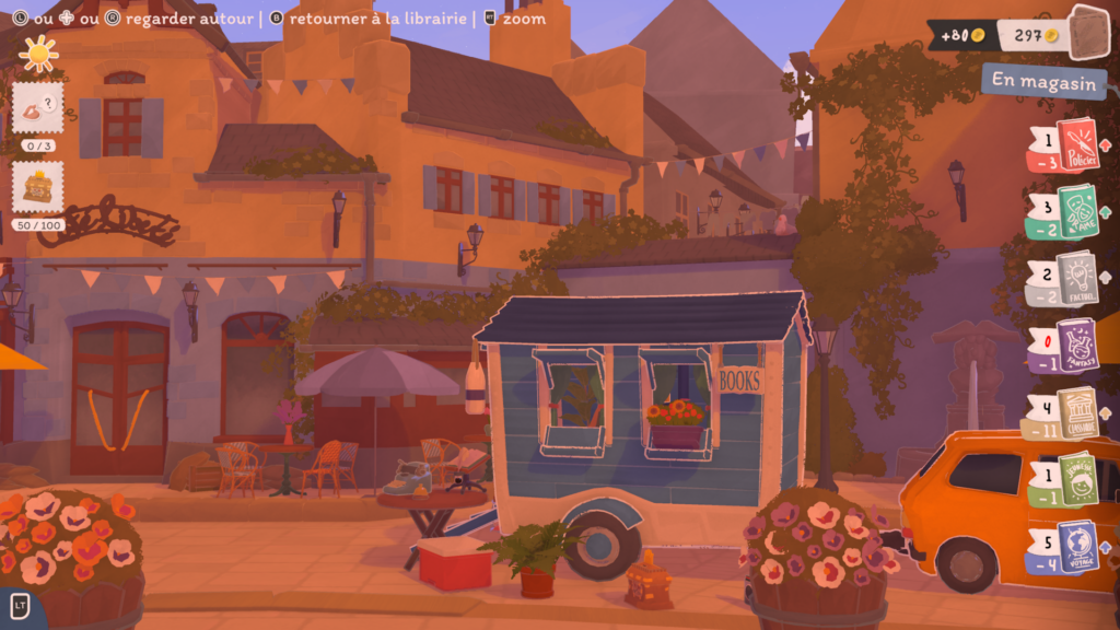 La petite pause cosy dans une bulle de rêverie dont j’avais besoin ! L’idée de partir en roulotte vendre des livres est délicieuse et le jeu tout entier suit agréablement cette douceur. Personnellement j’ai vraiment aimé !
